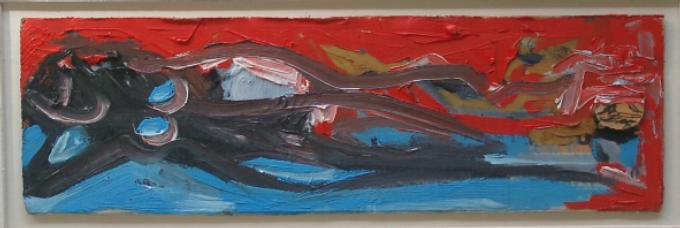 Liegende*. 1996. Öl auf Pappe. 33 x 12 cm |