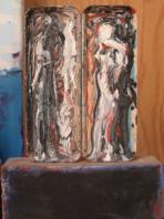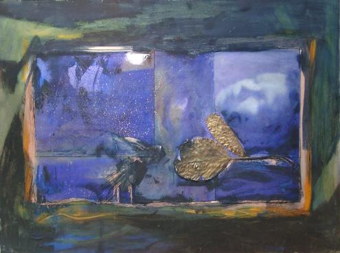 Figuren am Strand II. 1990. Collage. 35 x 23 x 7 cm |