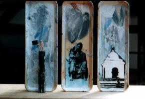 Figuren am Strand I. 1990. Collage. 35 x 23 x 7 cm |
